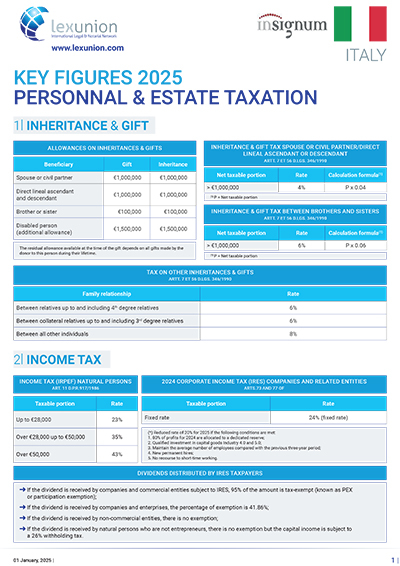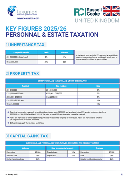 Lexunion Key Tax Figures for wealth management in Lexunion member countries